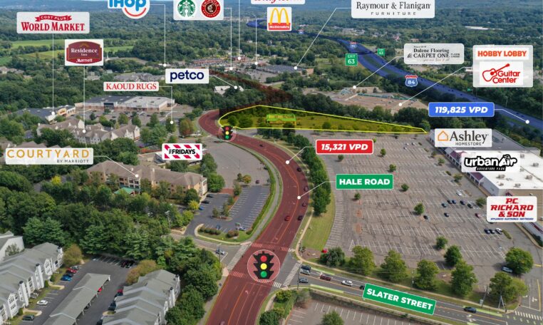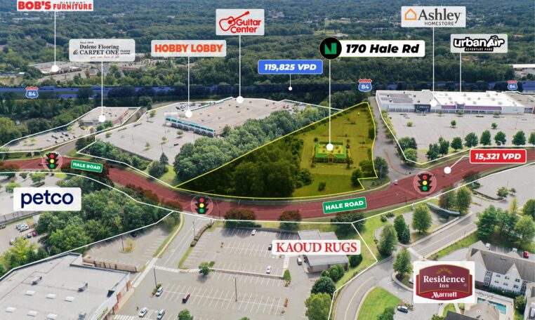 170 Hale Road is situated on a 3.44 acre parcel with the potential to build up to 30,000 square feet in the heart of the Buckland Hills retail corridor. This location offers excellent visibility at the traffic light on Hale Road (over 15,000 vehicles per day) and conveniently a 2-minute drive from Interstate-84. The property is positioned amidst a thriving mix of national and local businesses, such as Ashley’s Furniture, Courtyard by Marriott, Urban Air Adventure Park, Walmart, The Buckland Hills Mall and many more.